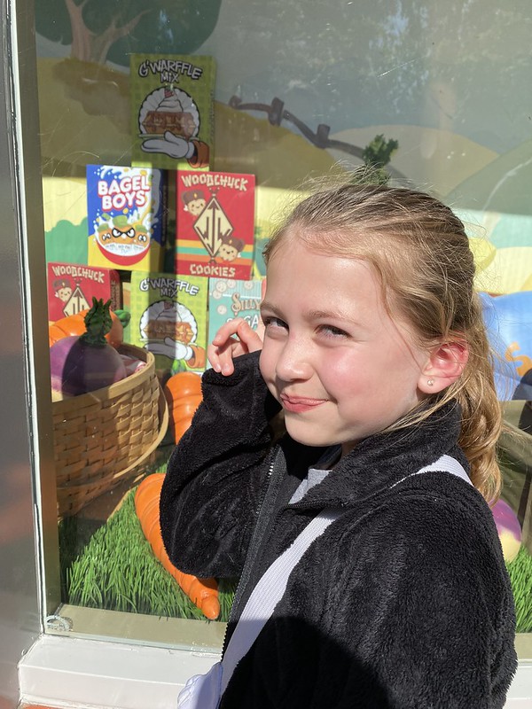 The ENTIRE time we had been waiting in line for Pirates that morning, DD had been reciting the Woodchuck tongue twister until I was literally begging her to stop. So then when we went over to use the restroom and spotted this window display with Woodchuck Cookies, we had to get a photo!