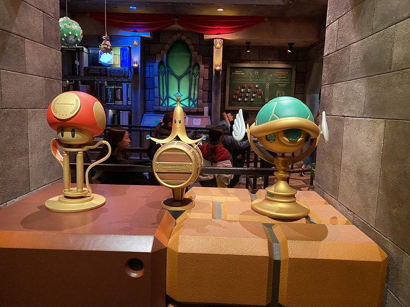 While we were waiting for DS to come off, I was looking around at all of the cute details in this area of the park. They had some of those multicolored Mexican flags (which I just googled and found out are called papel picado) and they had Charlie Brown characters on them!