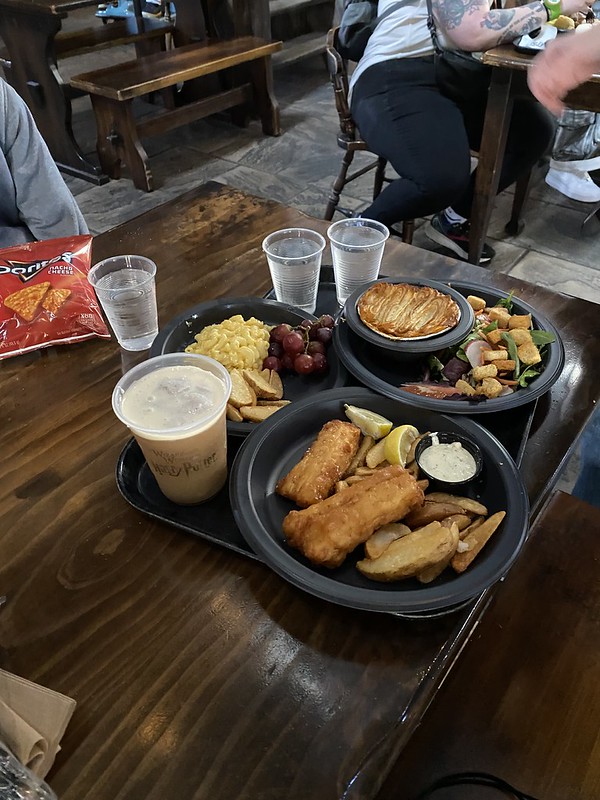 After such a long wait, we wanted to use our meal deal to get a snack to hold us over until dinner. Strictly on a Stick was a stand selling corndogs and the like, and it had one of the Peanuts snacks we wanted to try, the Linus Macaroni & Cheese Bites with fries & a spicy aioli. We got the mac and cheese bites with some corn dog nuggets and a corndog to split.