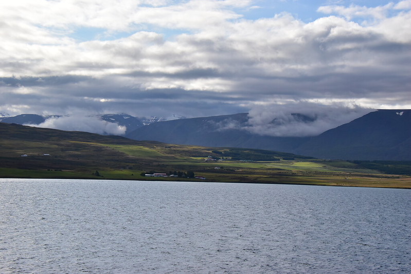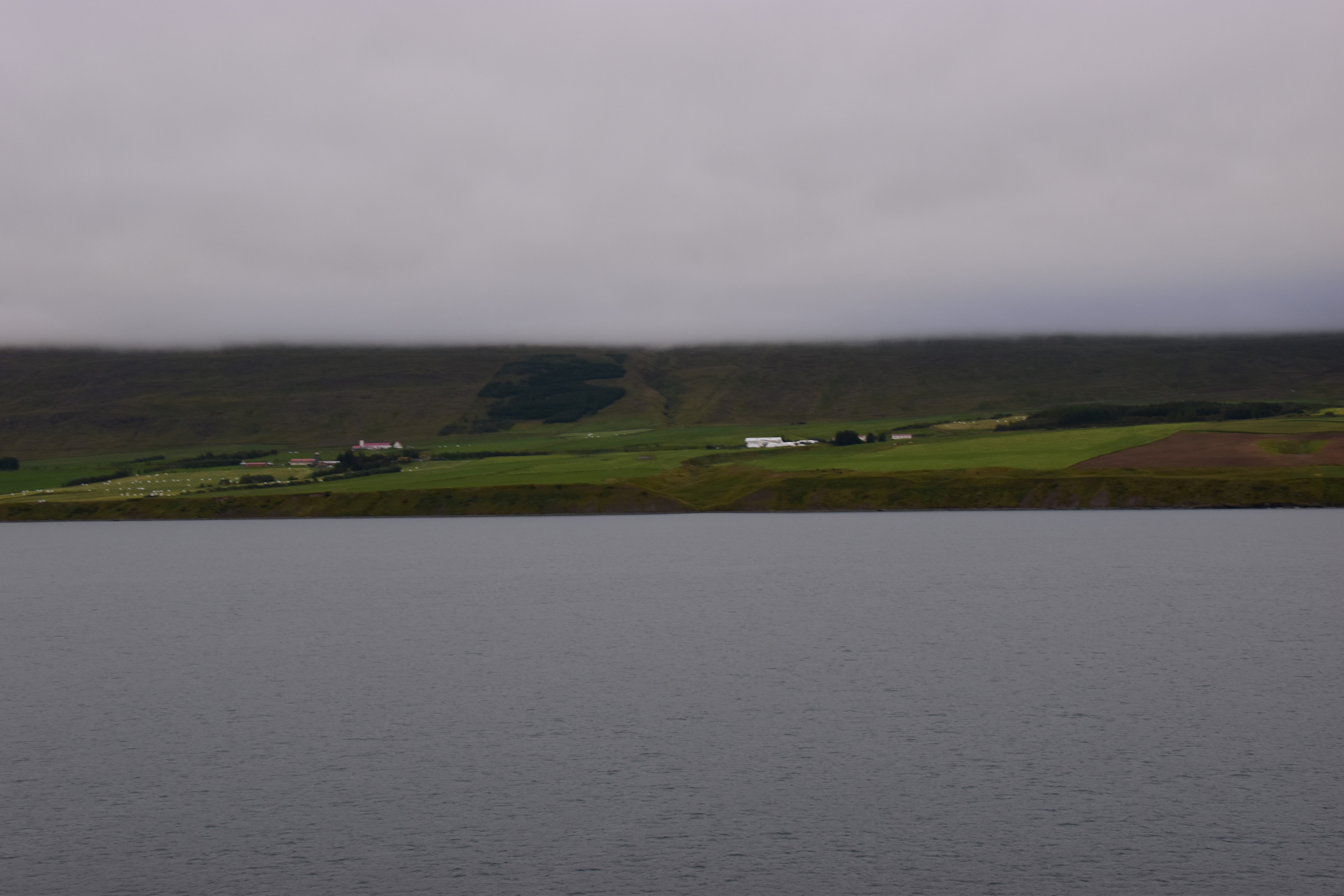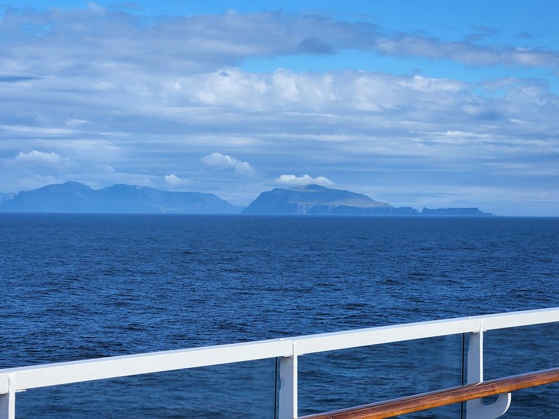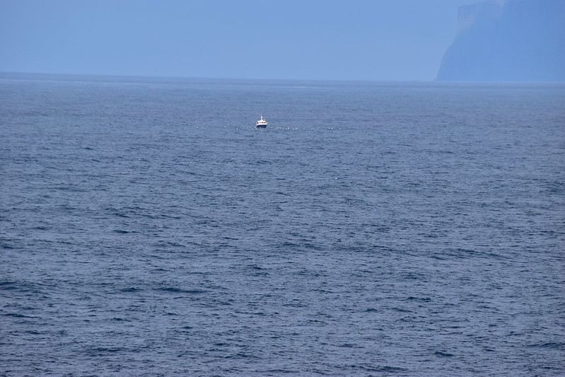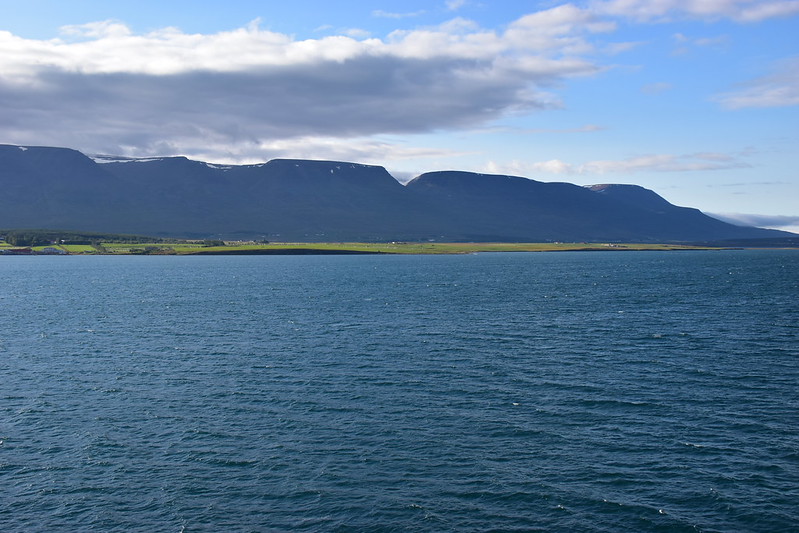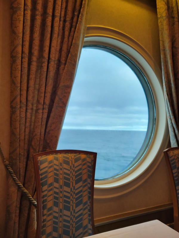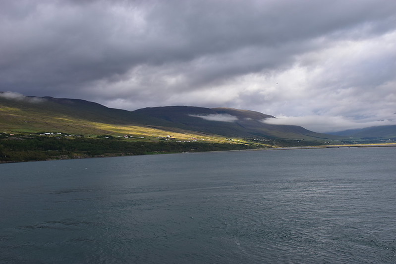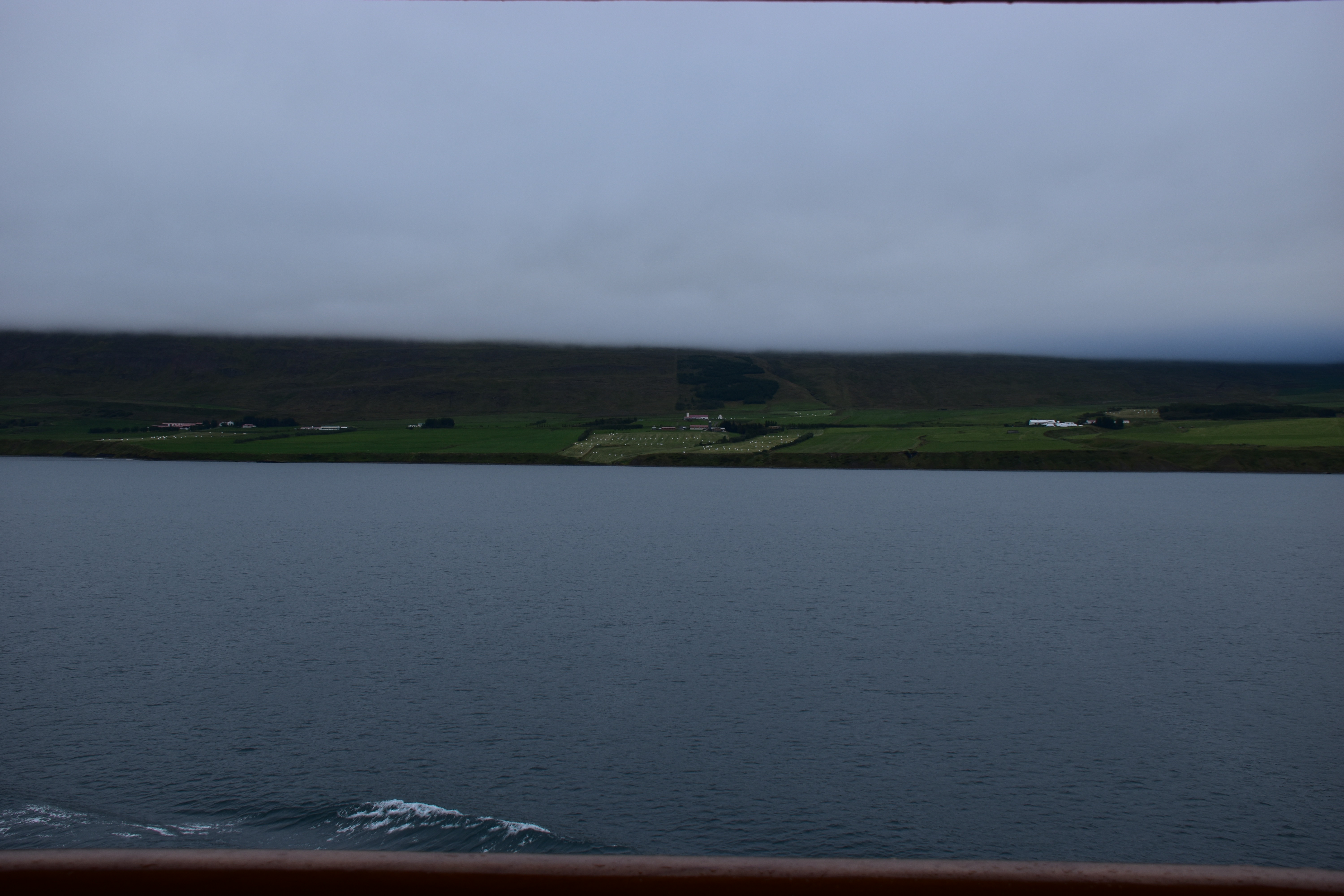 I grabbed my camera and headed to the verandah. We were sailing up the fjord. The day looked a bit dreary and foggy.