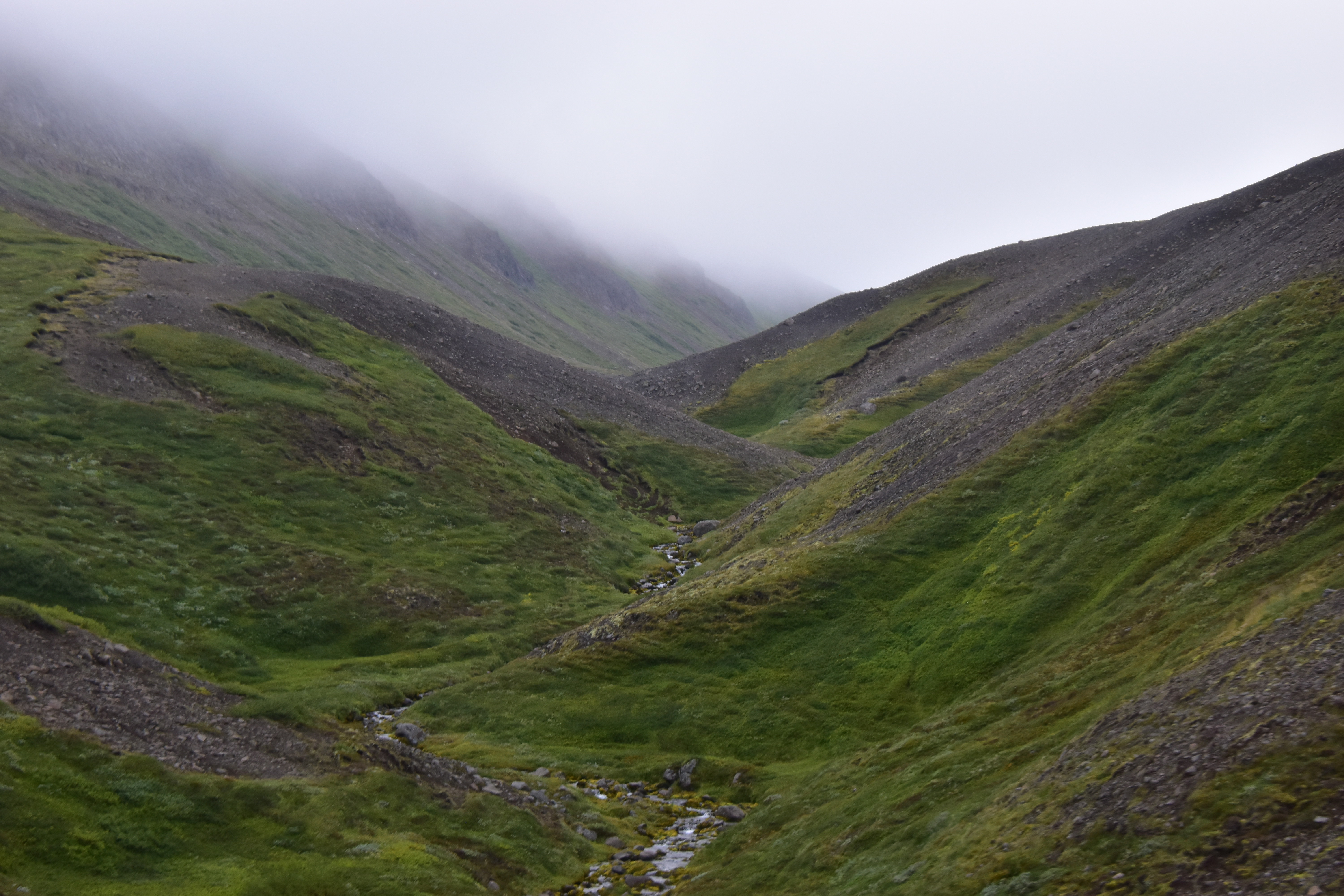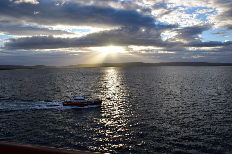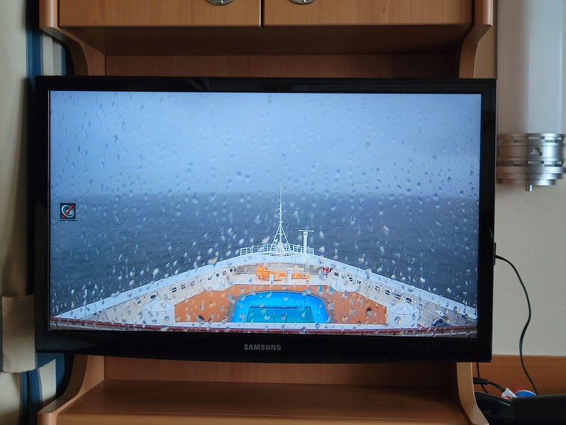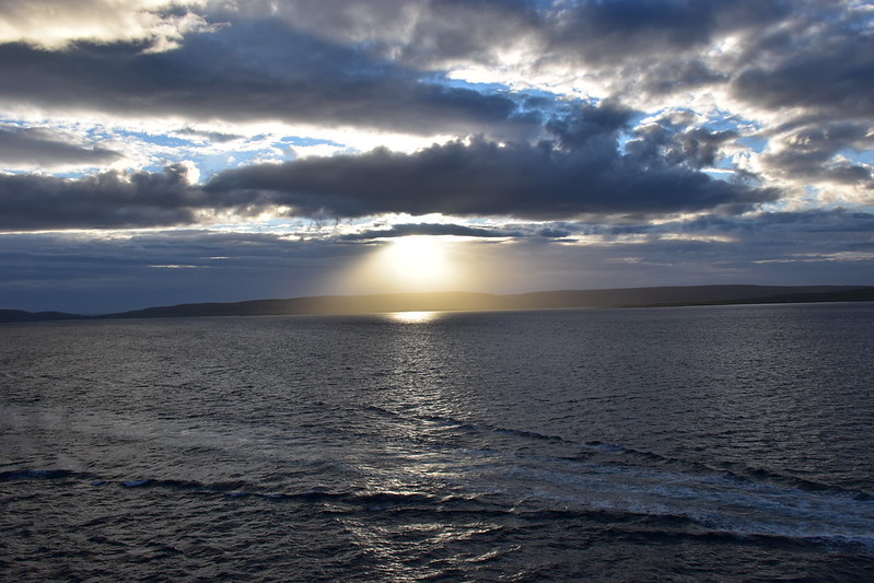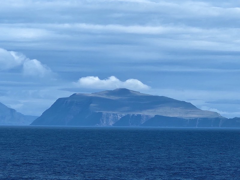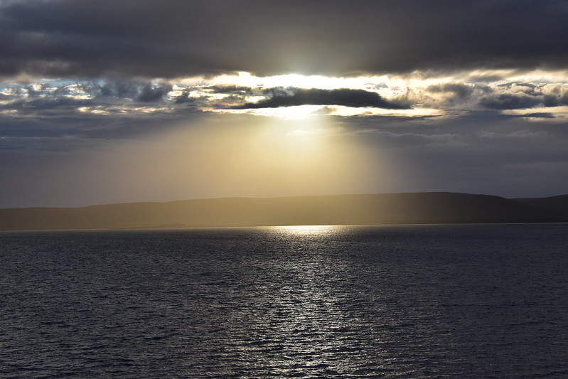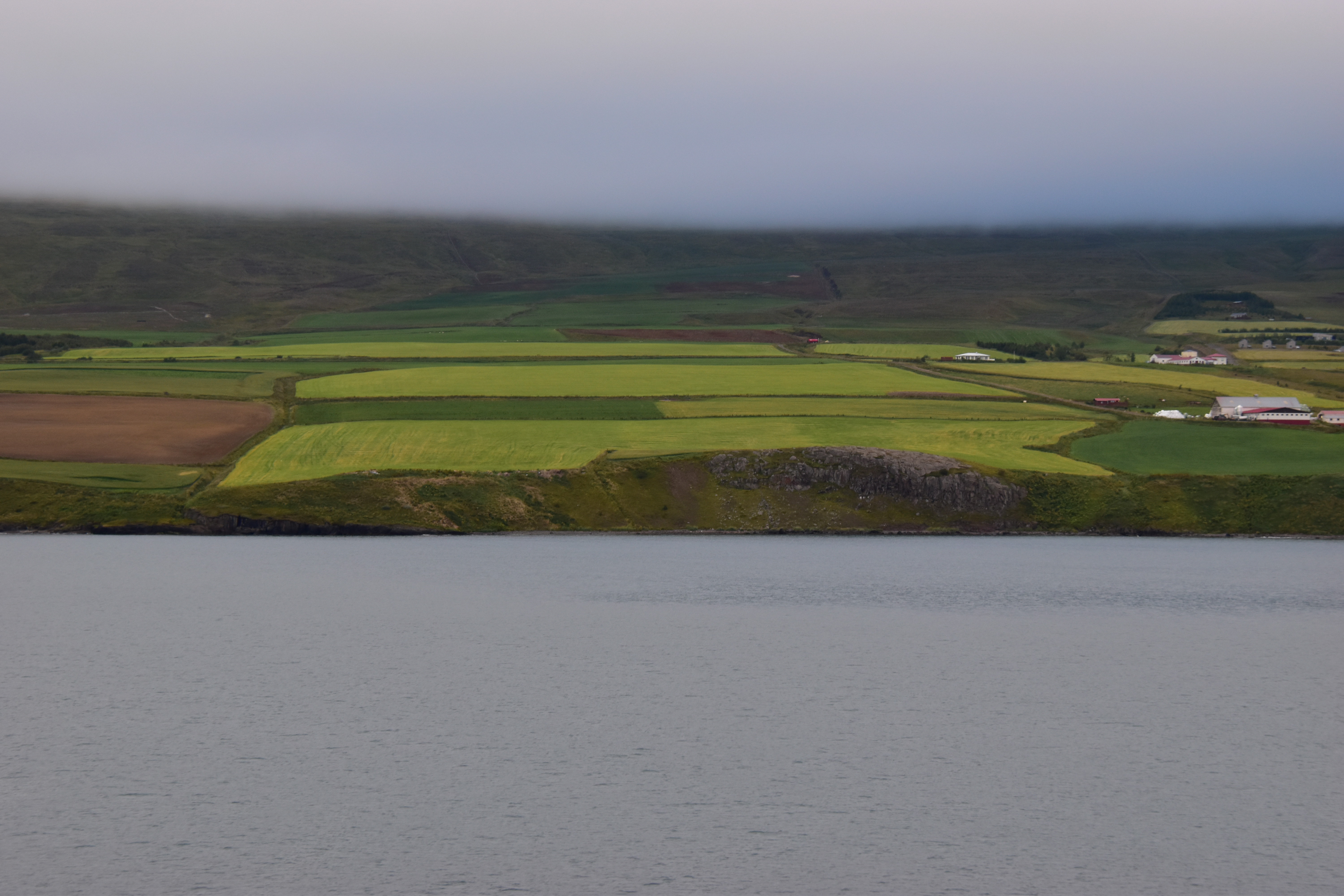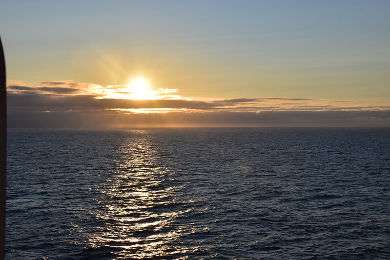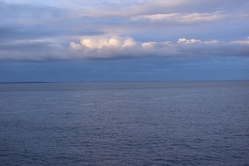 I grabbed my camera and headed to the verandah. We were sailing up the fjord. The day looked a bit dreary and foggy.