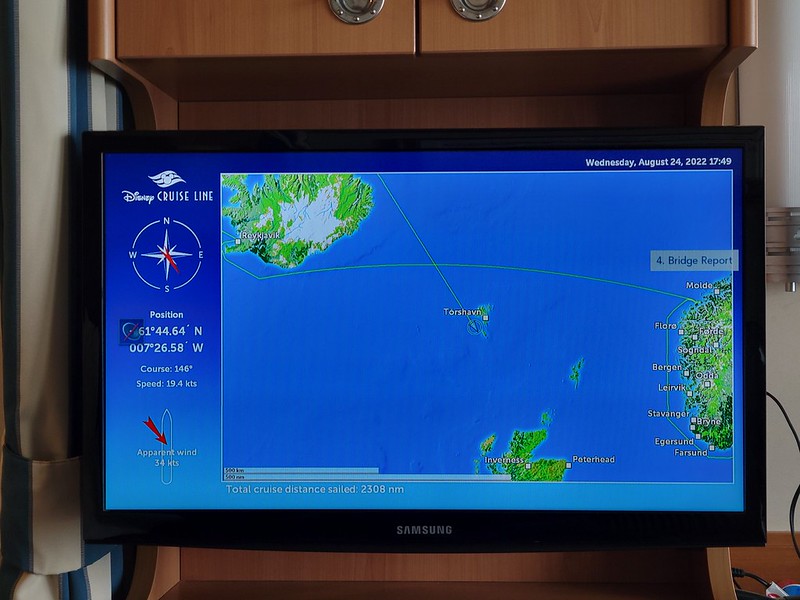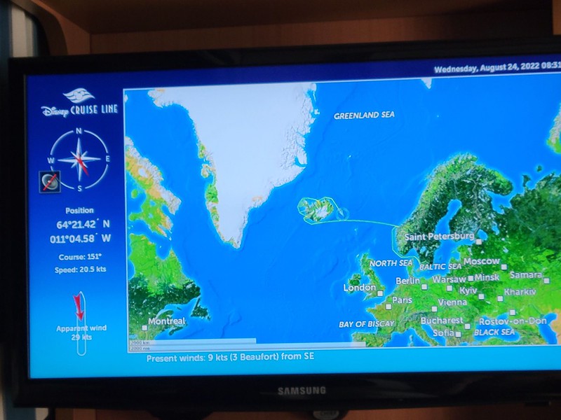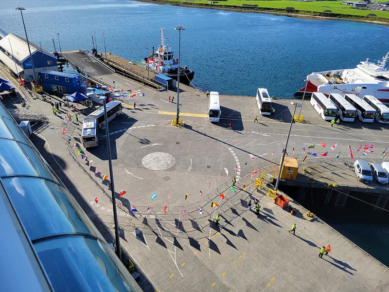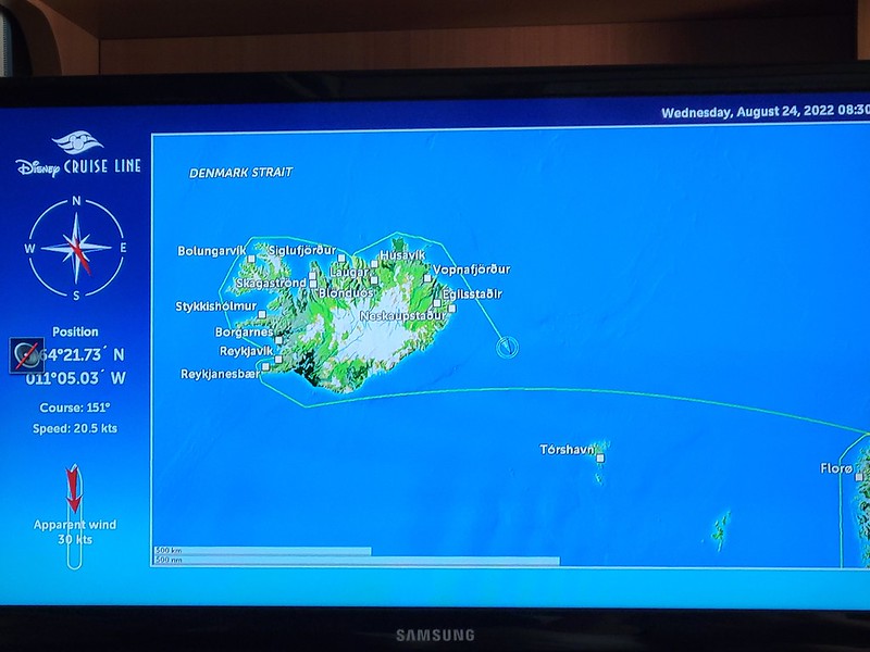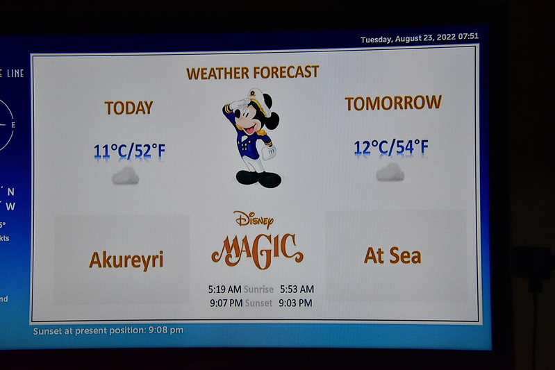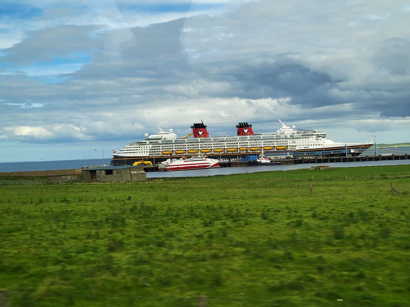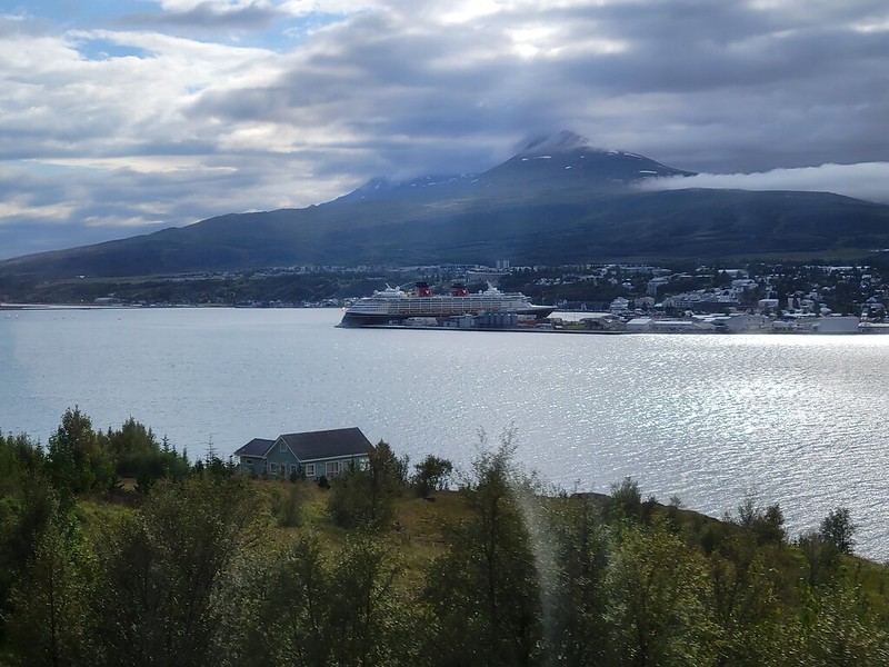 We had a 9:45 AM Jewels of the North tour with DCL. We were on our own for this one; our DNeighbors were doing their own thing. This tour wouldn’t accept wheelchairs. It was significantly cooler than yesterday, so we layered up and made our way to the Walt Disney Theater, checked in and were given sticker number 20. When we were called, we made down to deck 1 and boarded our bus.