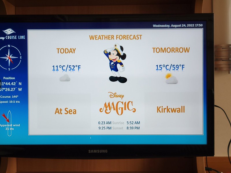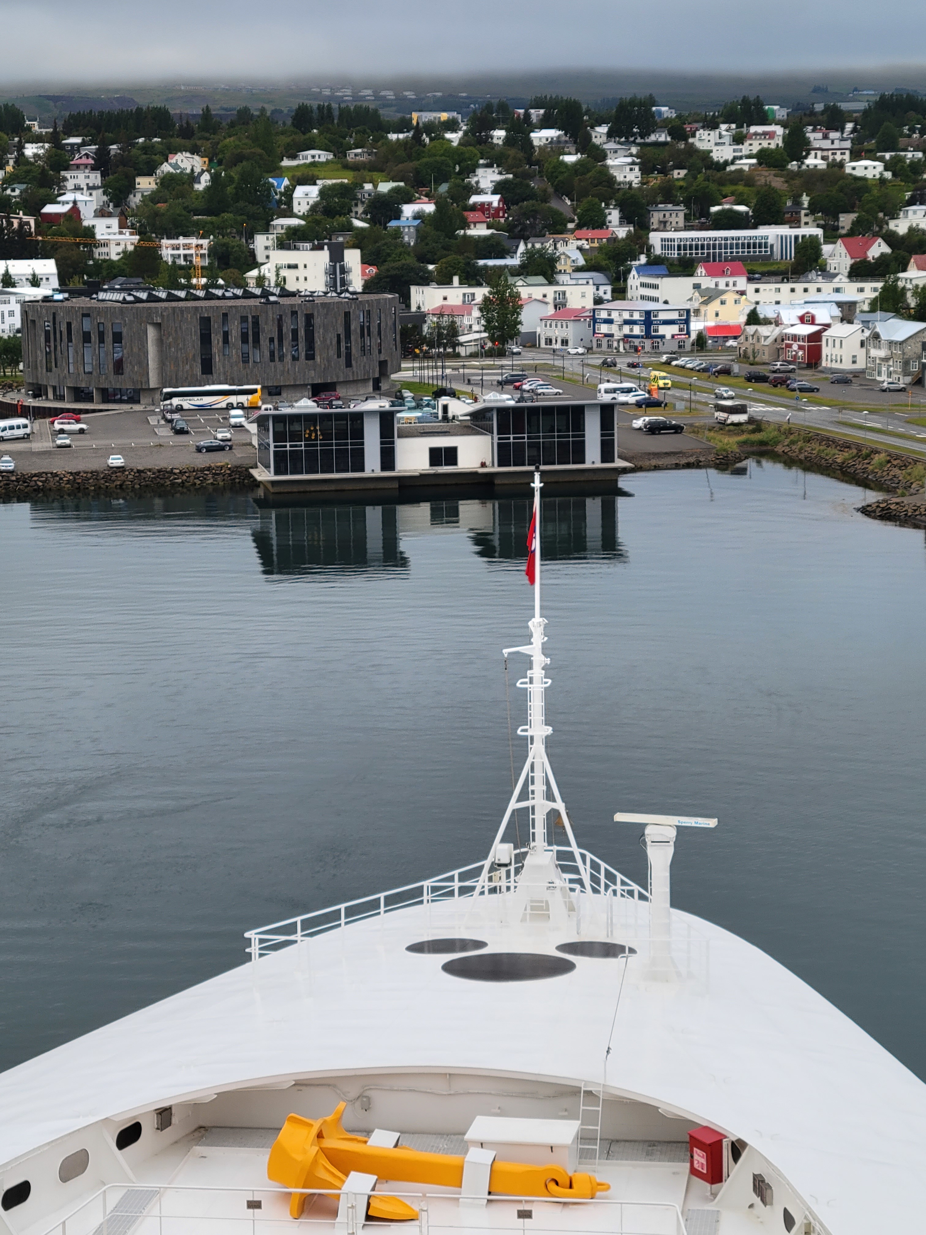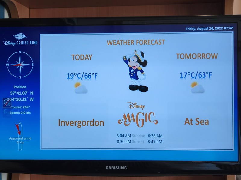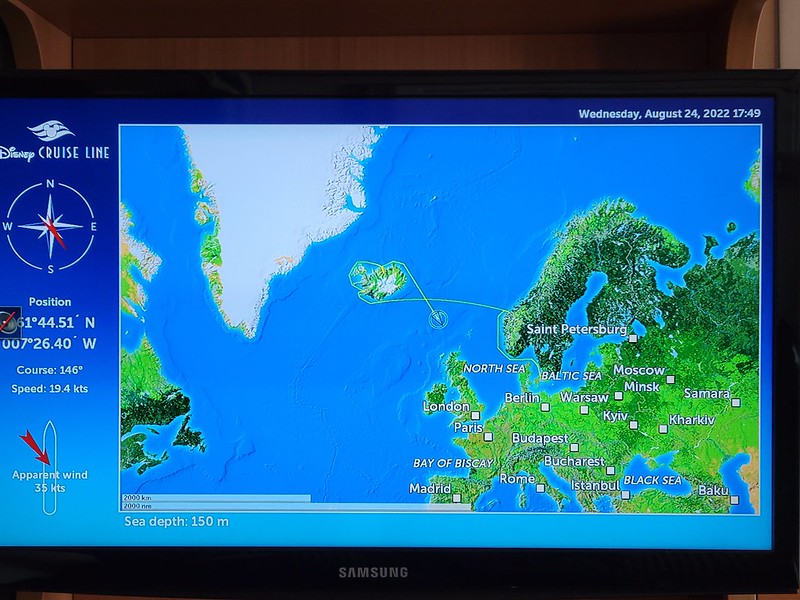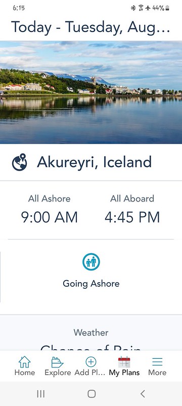 We had a 9:45 AM Jewels of the North tour with DCL. We were on our own for this one; our DNeighbors were doing their own thing. This tour wouldn’t accept wheelchairs. It was significantly cooler than yesterday, so we layered up and made our way to the Walt Disney Theater, checked in and were given sticker number 20. When we were called, we made down to deck 1 and boarded our bus.