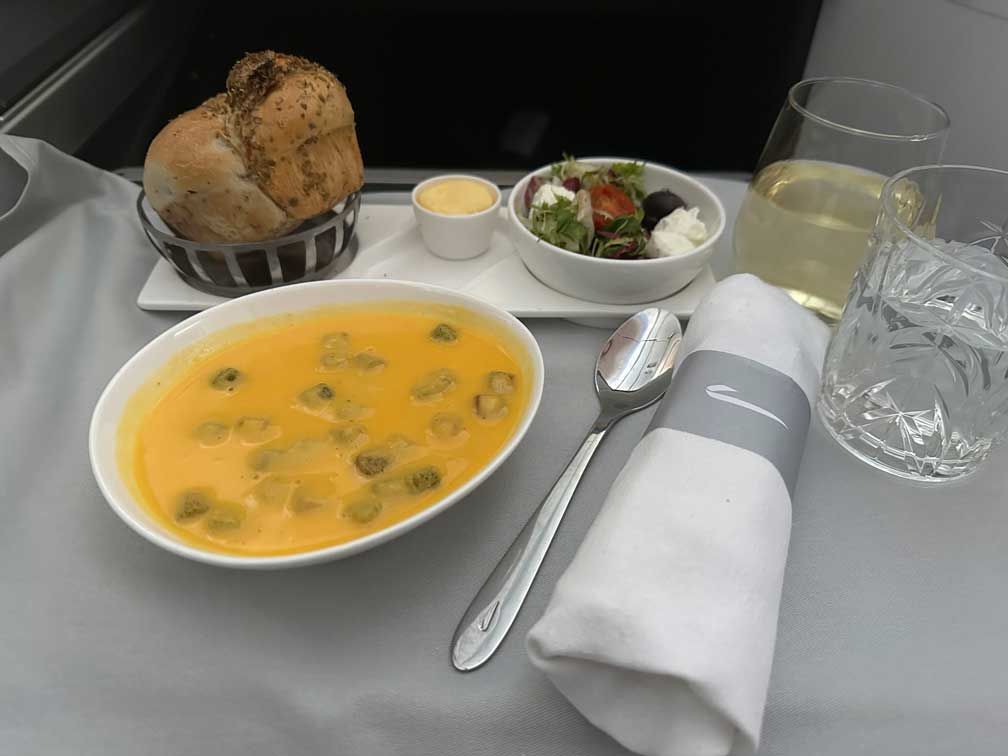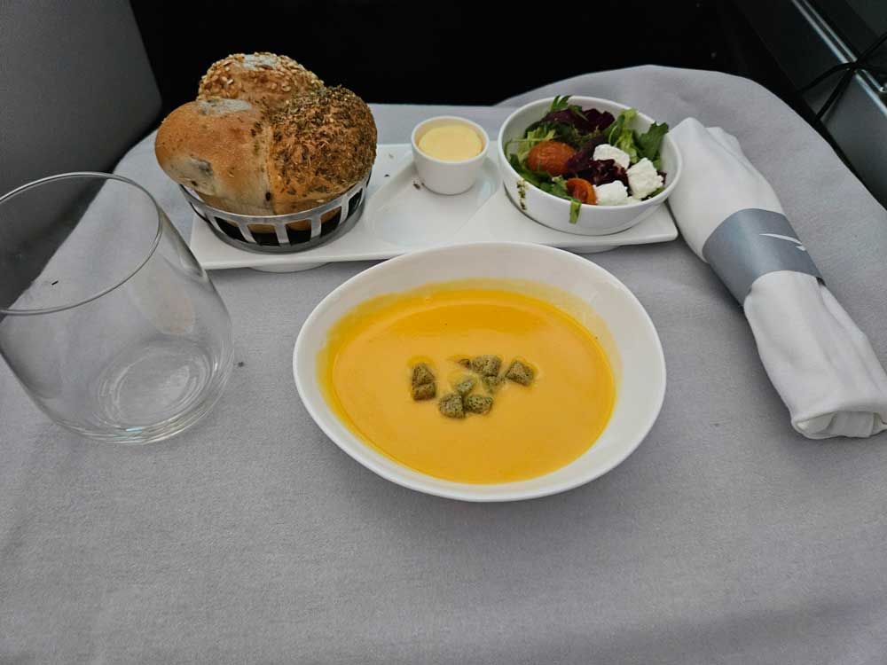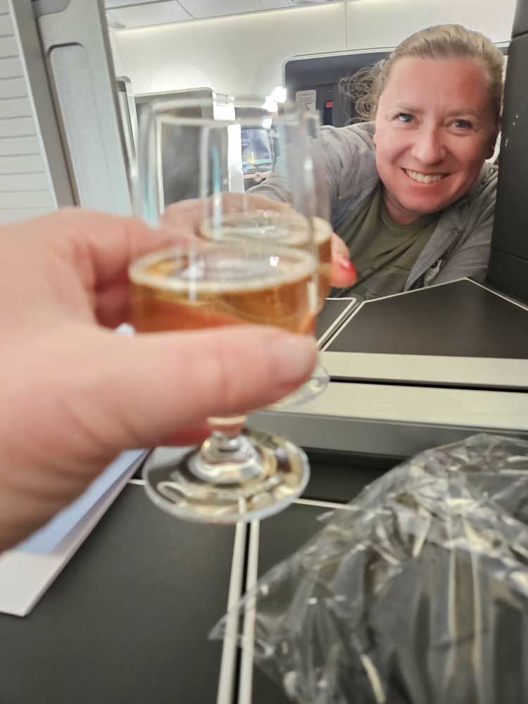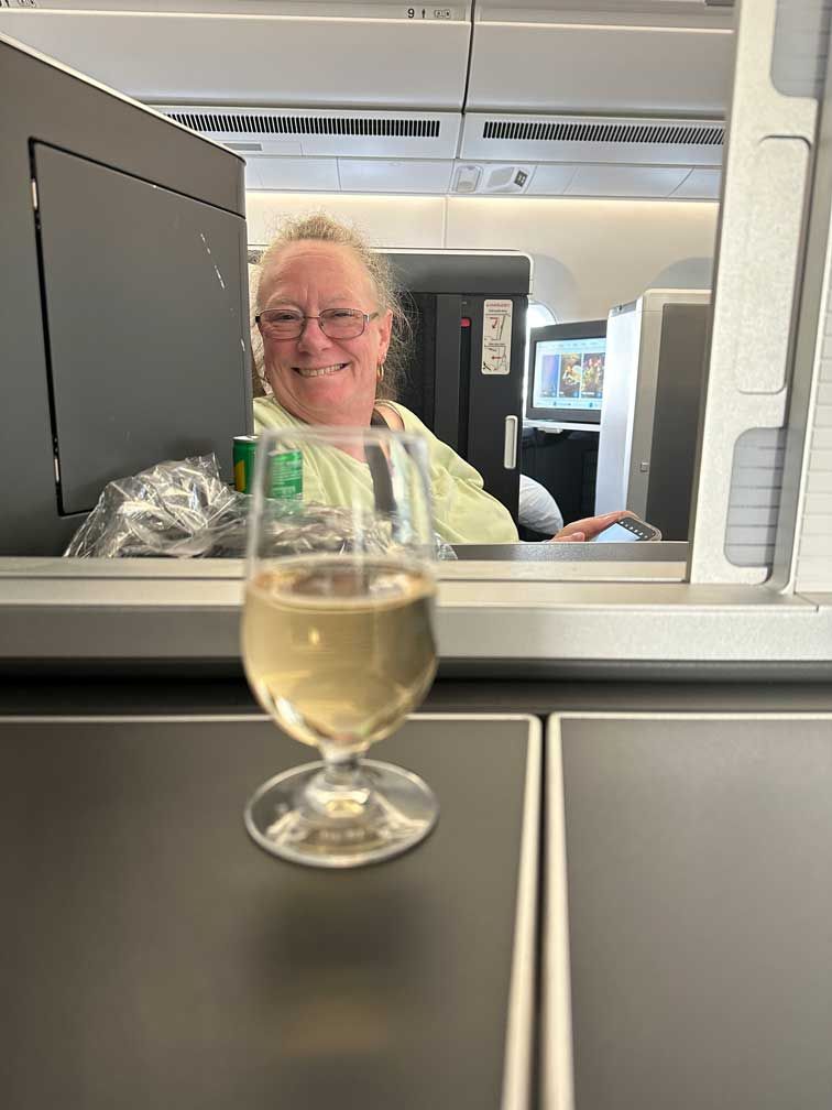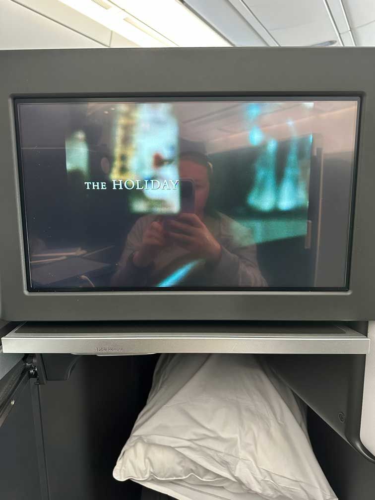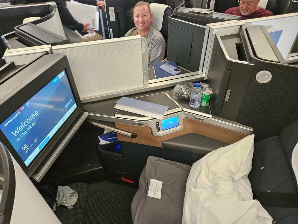 We took our seats and again we had the comfy lay flat pods. This time it was even more ideal because we had a pass through between us so that we could chit chat throughout the flight.