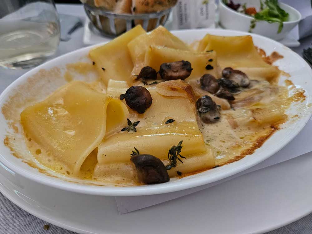 The choices for mains were lamb of some kind, chicken, or a pasta with mushrooms. I ordered the chicken, but they came back to tell me they were out so I had to pick something else. I'd really had enough lamb on this trip so I went with the pasta. I guess Jill got the last chicken dish.