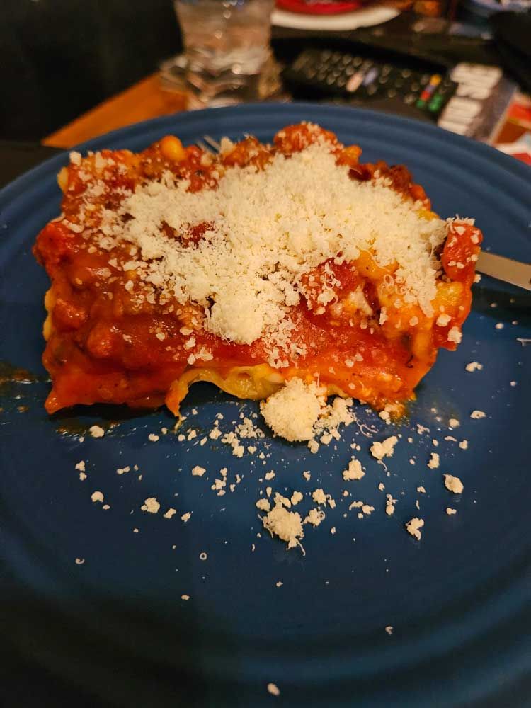 We got to her house and immediately started a Stouffers Lasagne in the oven. She ended up just putting hers into a Tupperware and saving it for later, because she wasn't hungry.