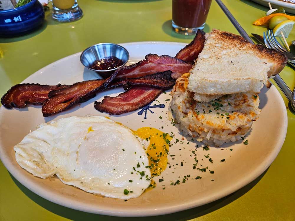 For over a week we had been planning breakfast at Jill's favorite spot. They opened at 6AM and we headed over there around 7AM. We've been to this place before so we have a standard drink order. She gets the Blood Orange Mimosa, I get the straight up Bloody Mary. (They have several flavors from Kimchi spice, Thai flavor and just plain spicy.) You may see something similar if you join in on my next TR!