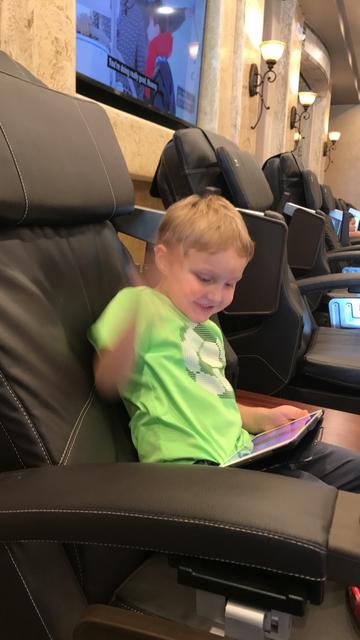 Haha did you believe that?? We do have pre-check which makes things easier, but boys excited to go to Disney do not follow TSA direction that well:sad2:. Finally through the hardest part, we were in need of a break. We decided to eat at Chili’s. This is a family favorite and there's bottomless chips, should keep the boys busy until their food arrives.