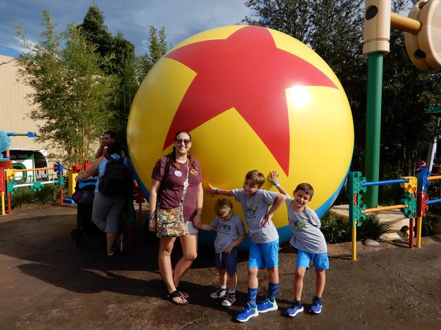 Also stopped for a picture with the Pixar ball, and was so glad I did. Every time we walked past it again it was covered in strollers.