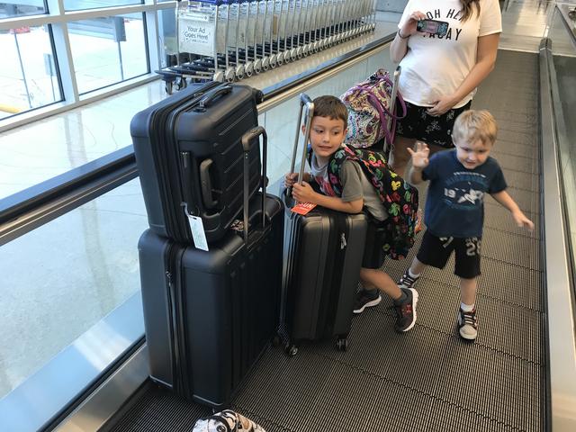 Then came the hardest part of any travel day, lugging all the bags through the airport, while wrangling three rambunctious boys.
