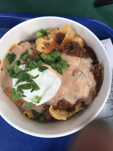 The seating area was crowded, but we lucked out and grabbed a table. Our snack of choice was the totchos.
