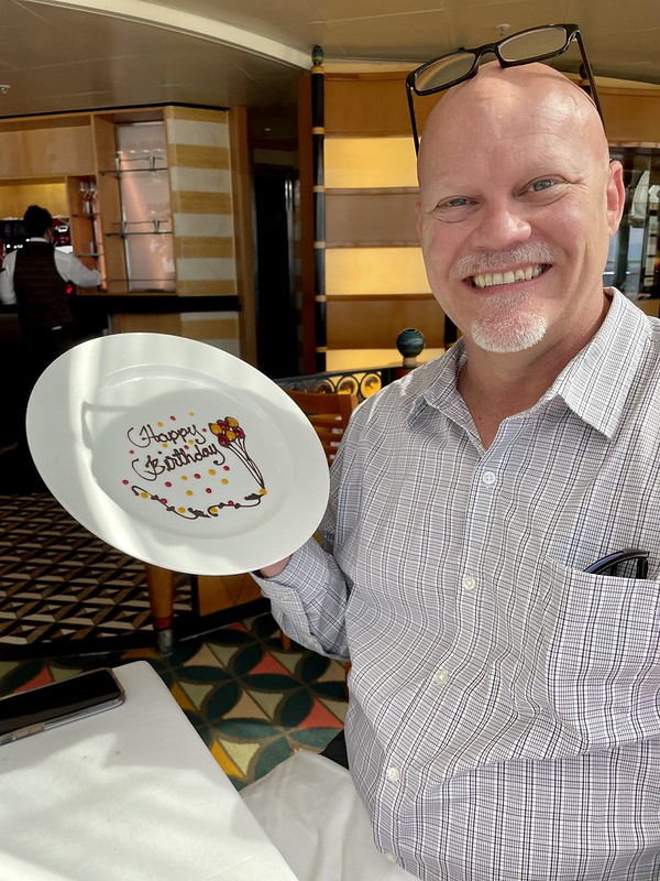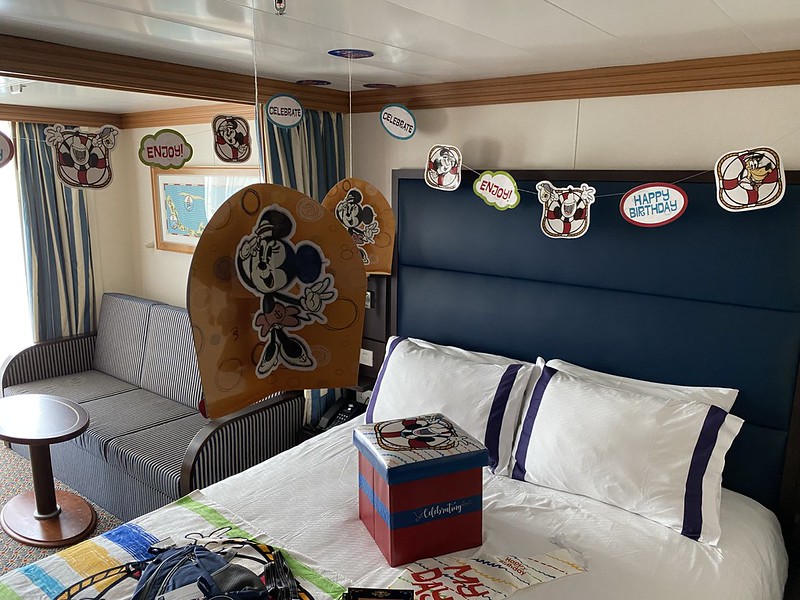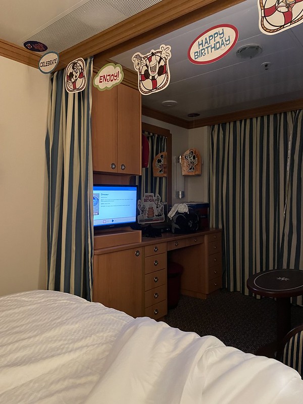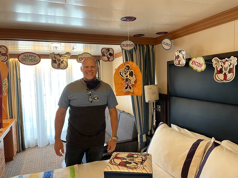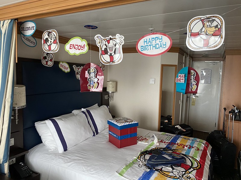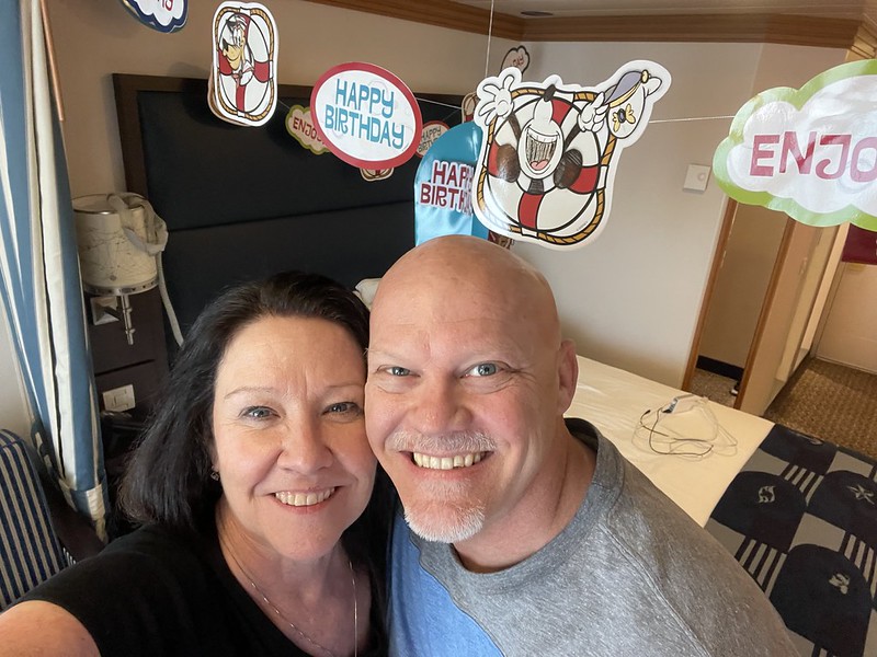 We sat and chatted until just gone 1:30 pm and, seeing as our state rooms were going to be ready, we went straight down to them. I had ordered the birthday package for Scott seeing as it was his actual birthday!