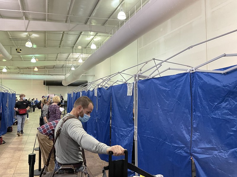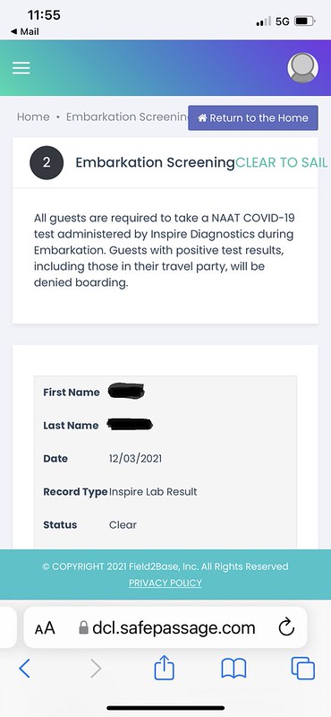 We used our Port Arrival form a lot during the boarding process. The first time we had to show it was to enter the line that was within the port arrival time. If you were early, they had you stand in a holding line. The wait wasn’t too long at all and we were in the Covid testing area by 11:00 am. This area used to be the area for standing in line for security but was now dedicated to Covid testing. They had EZ-up type tents (with no roof) set up and all four of us went into the same tent to be tested.