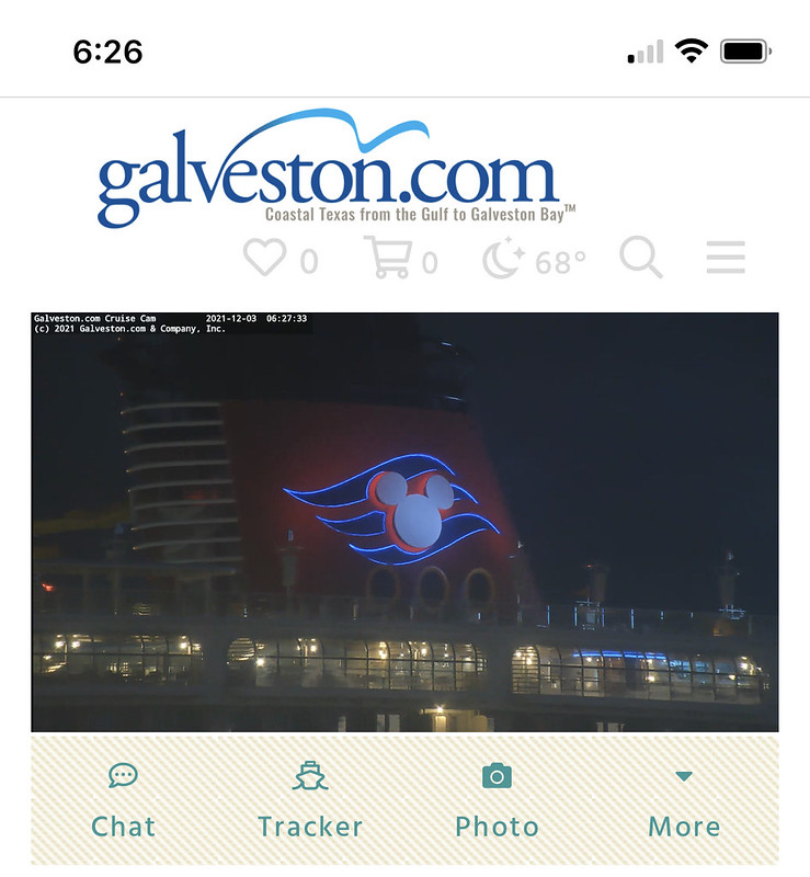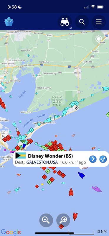 By 4 am (I still hadn’t slept) the Wonder was still showing as moving into Galveston. I did finally manage to drift off to sleep after taking this. LOL
