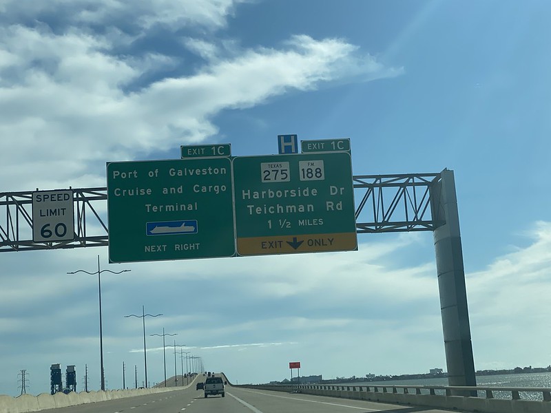 The weather was perfect and we made good time down to Galveston despite a quick restroom stop at Buccees. Here is the obligatory Galveston sign - it's a bit wonky but Scott was trying to catch it at the last minute.