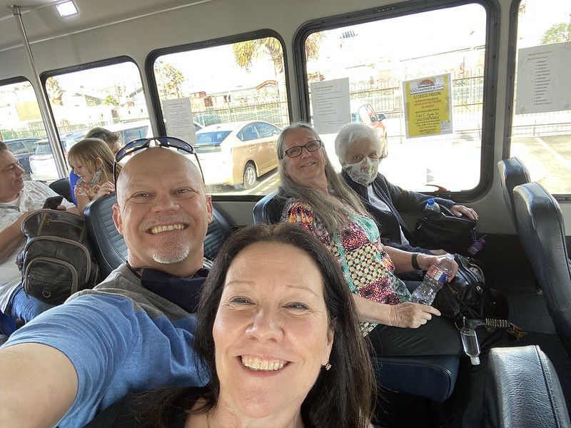[We got down to EZ Cruise parking at about 10:30 am and were on the shuttle to the port shortly afterwards. Scott managed to snap a quick photo of our ride before juggling all of our luggage.