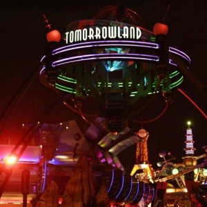 Mission Space sign at night