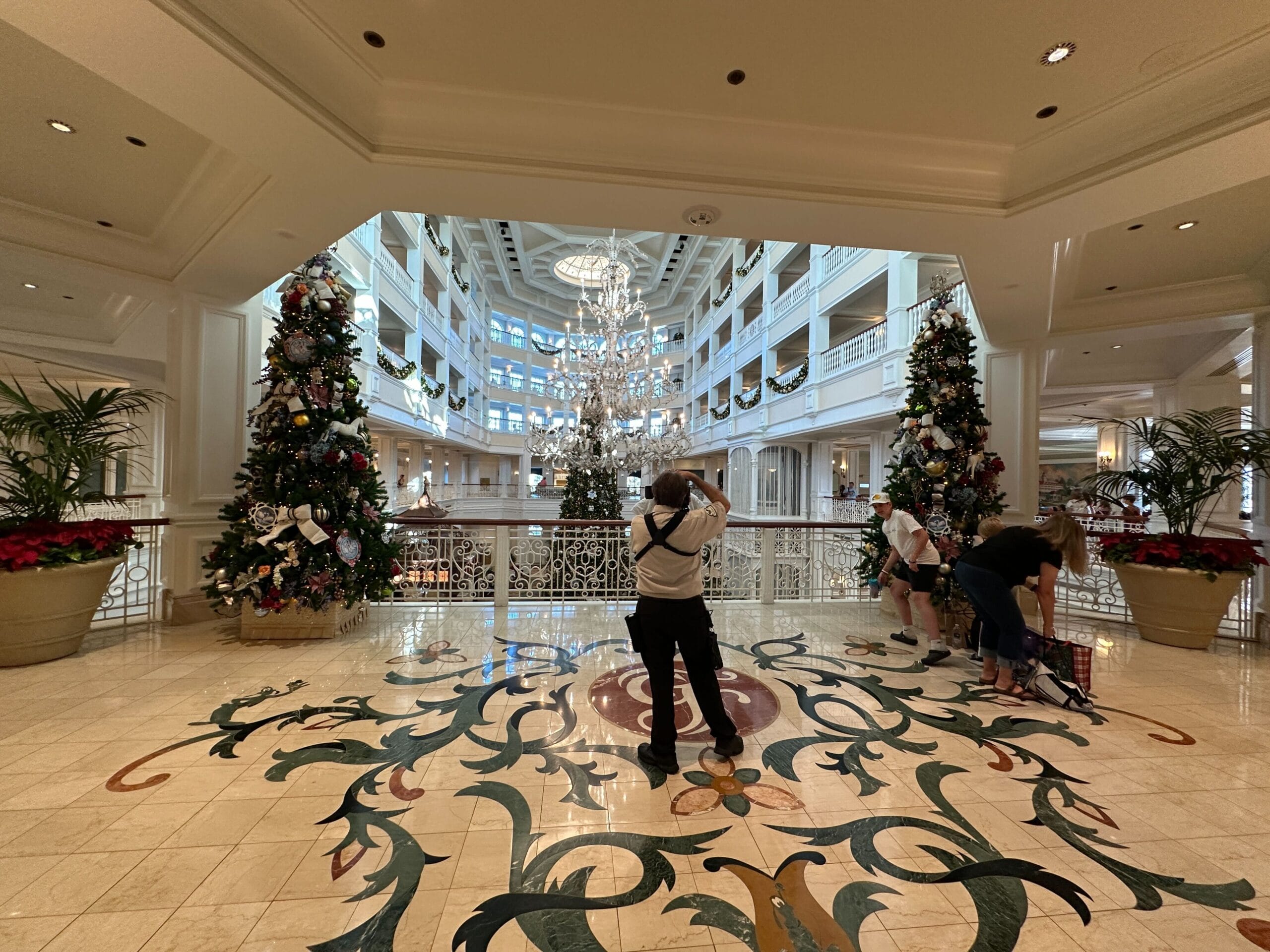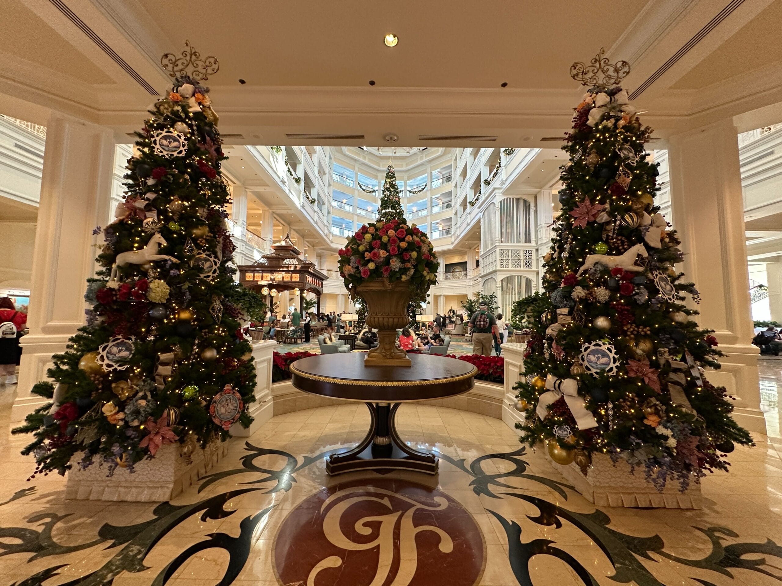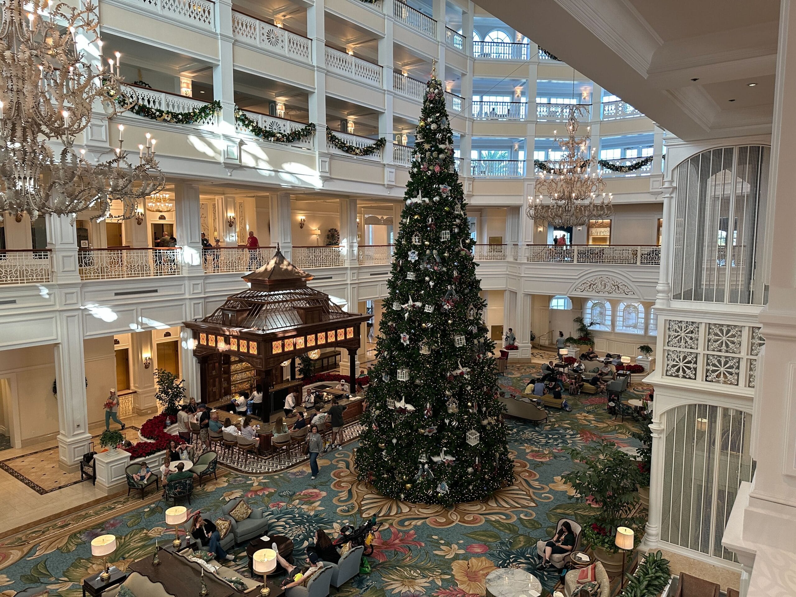 Disney's Grand Floridian Resort & Spa Christmas tree has been installed in the resort lobby for the 2025 holiday season, along with other festive décor.