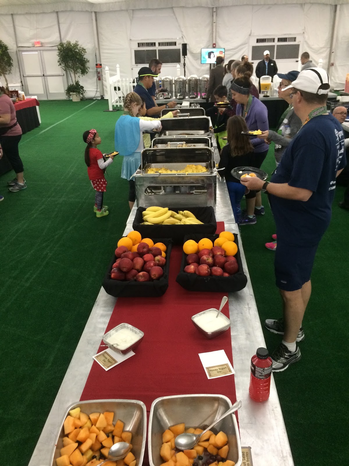 This time, we stopped to pick up a banana and RunDisney food pack before heading over the race retreat tent for breakfast.