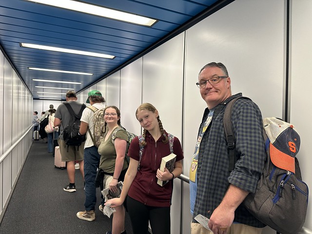 We took our time at dinner and then headed to our gate. We had just enough time to take turns using the rest room before they started calling folks to board.