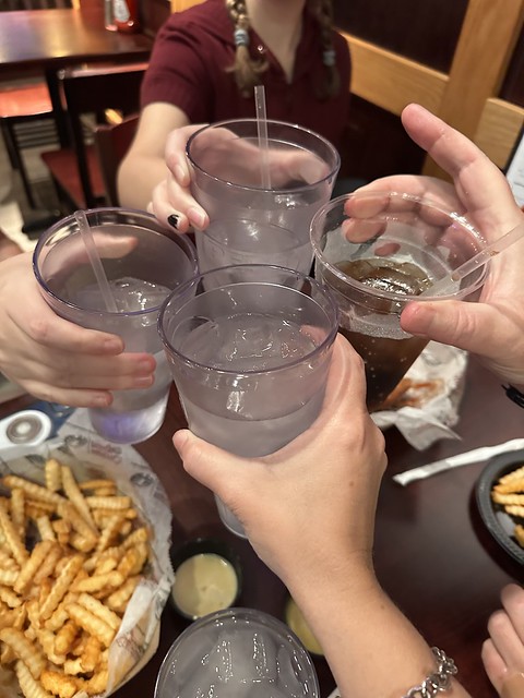 It was a crazy week leading up to this trip and Andy and I were just not feeling a vacation kick off drink. So, we went wild with waters and a diet coke all around!