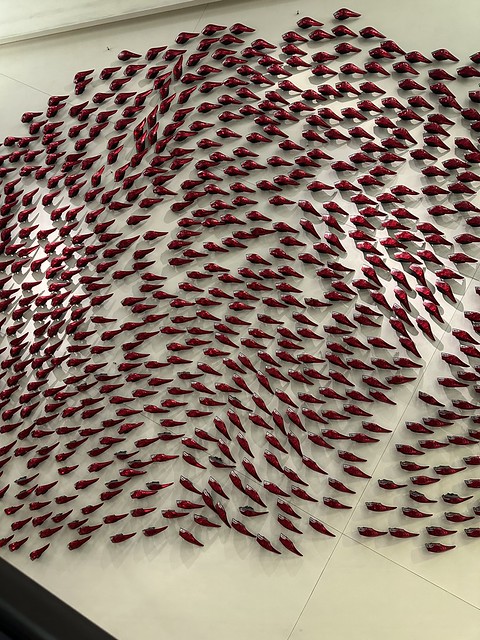 It was now 10:46 california time, so 1:46 for us. So we were READY to get to the hotel! The car care center had a lot of art made with car parts. This was break lights!