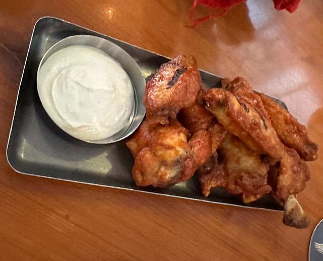 We chose the Bird's Eye Chili, as it sounded the most like a Buffalo wing. We have had these before and both times they were good but not amazing. They come with sour cream on the side which we find strange. I would def prefer it to be ranch or blue cheese not sour cream.