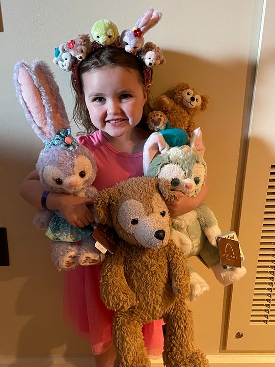 DD4 LOVES Duffy. She sleeps with him every night and has since she was old enough to have a toy to sleep with. She likes his friends but since we have been home the headband and Stella haven’t been touched. Along with the Shellie Mae in her closet that I bought her two years ago. She is just all about Duffy.