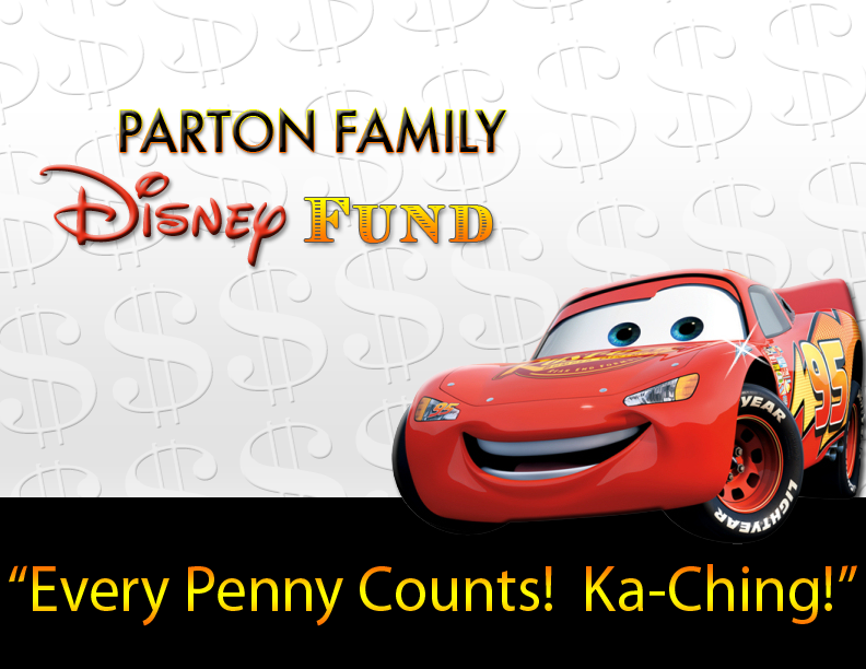 We have been saving change for our disney vacation and the jar is just so plain. I have tried putting stickers on it but they just dont look right. We have a pretty big plastic jar. It is one that cheese balls came in from Sams Club. I am hoping that someone can help me make a sign to put on it. We have it sitting on the bar between our living room and kitchen so we will see it as soon as we get home from work and it reminds us to put the change in it. This way our son can also see how full it is getting. I am really just looking for a sign that is the size of a regular sheet of paper. I would like for it to say something like Our Disney Fund, Saving for another magial Vacation, Money for Maverick's first Disney trip, Going to MNSSHP one penny at a time, Parton Family disney fund. I am open to any and all suggestions and I would be greatly appreciative of anyones help. I am just not a very crafty person. Thank You in advance for any help.