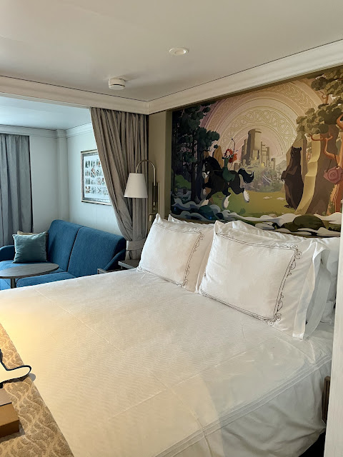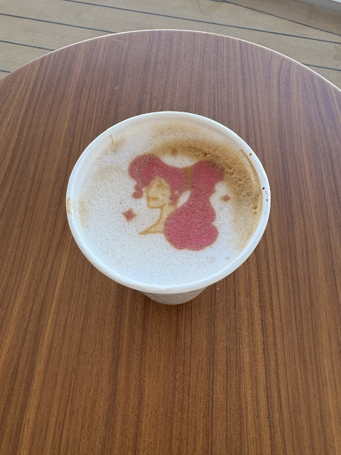 We got onboard and because the ship had been in port overnight without any passengers (a “dark night”) we were able to go straight to our rooms. We dropped off our stuff and went to Marceline to eat lunch. After lunch, we explored the ship taking photos and seeing all the great themed areas. This ship has the same layout as the Wish, which I was less into than the other ships. Indeed, many things I didn’t like about the Wish I still don’t like about the Destiny, but I enjoyed the theming much more. “Heroes and Villains” is definitely more my style! Heather had some coffee from Cafe Merida and I tried out the interactive Haunted Mansion game which is a scavenger hunt type game similar to the Midship Detective Agency on the Dream and Fantasy. I don’t recall the Wish having anything like that and I haven’t been on the Treasure.