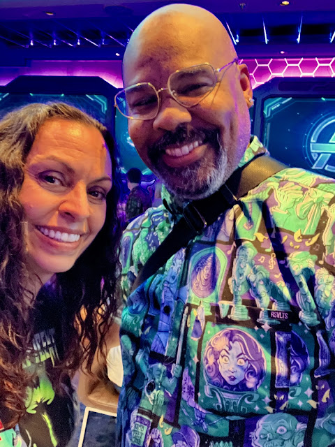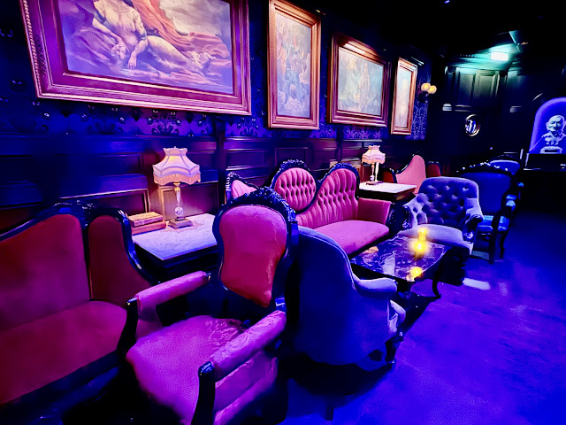 We decided to skip the show for the evening and instead made our way to the Haunted Mansion parlor. It was the perfect time because it was really chill inside. This was one of my favorite areas of the ship. The theming was absolutely incredible and it was just so chill and amazing inside. What a huge step up from the bland and boring Hyperspace Lounge on the Wish—what a missed opportunity that space was. I love Star Wars, but Hyperspace Lounge just doesn’t feel right to me. It’s like the empire when really I want to be part of the rebellion. I wish it were more like Oga’s at the parks: gritty and fun. Instead it’s polished and sterile. Back to the Destiny; The Haunted Mansion Parlor is perfection and I loved it.