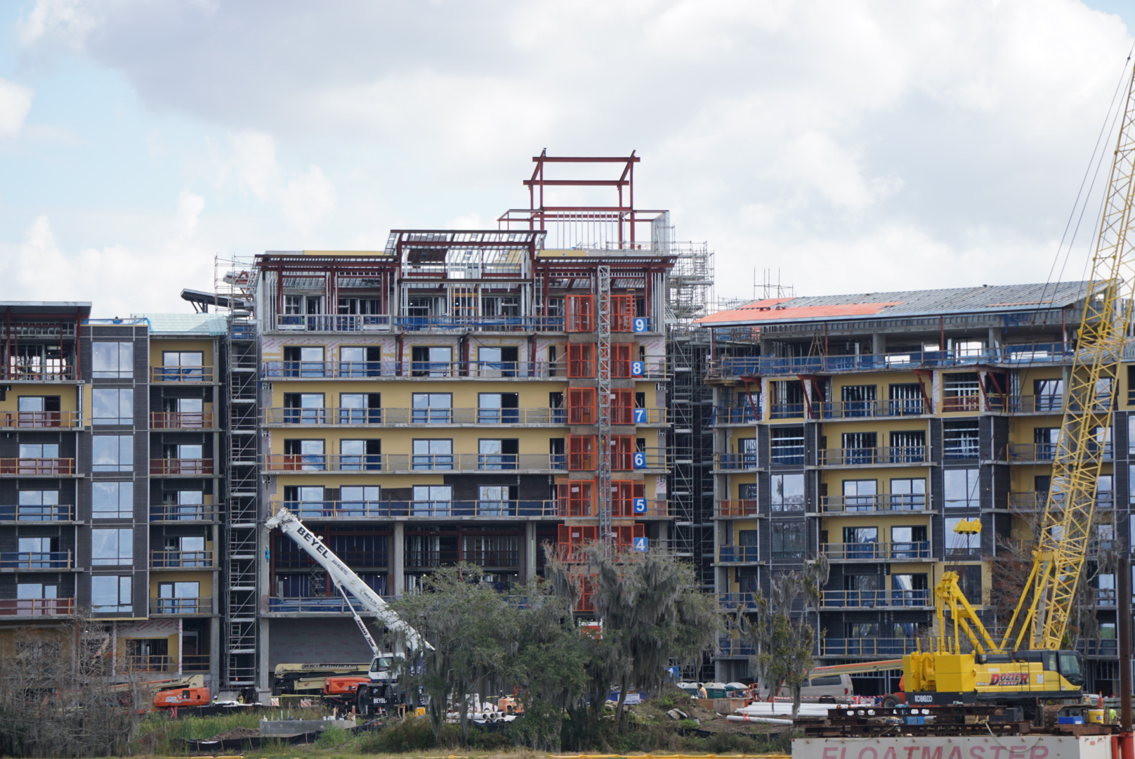 Toward the middle of the resort, crew members are working on the upper areas of buildings and balconies that have not progresses as quickly.