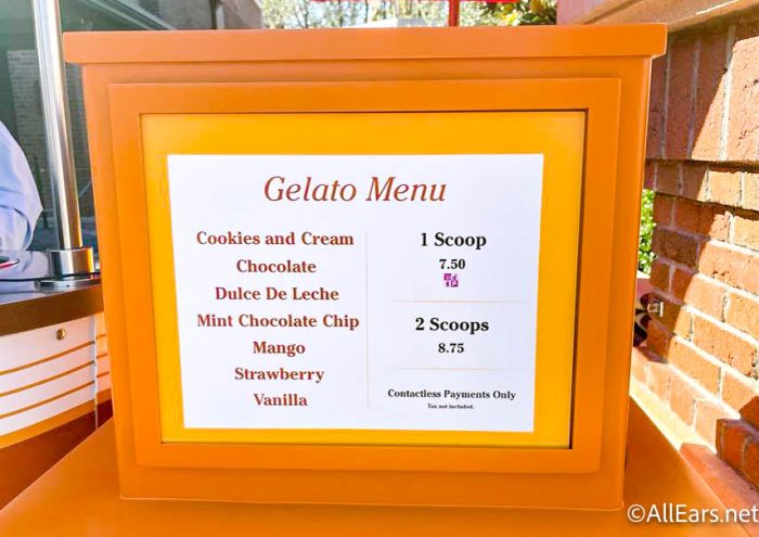 Over at Muppets Courtyard in Disney’s Hollywood Studios you can now find a NEW gelato stand! The Cast Member we spoke to said that they think this spot will be permanent. Of course, that’s just what we were told by one Cast Member, so we’d advise that you take that with a grain of salt, but it’s still interesting to see an entirely new snack stand pop up in the park.