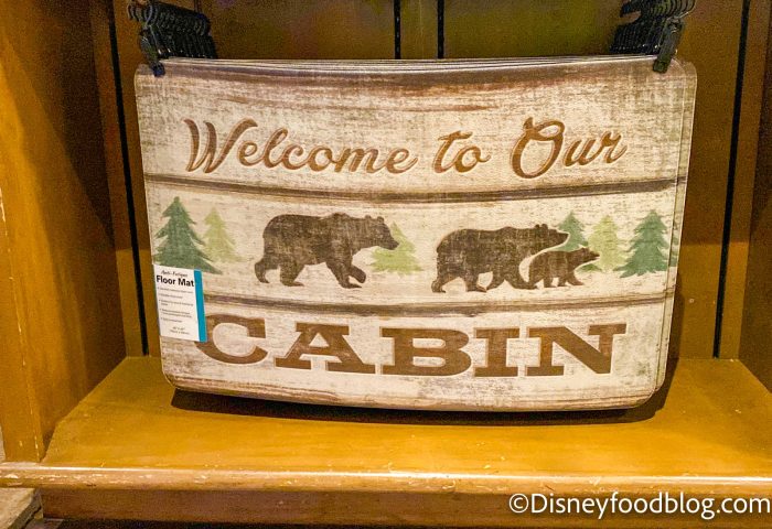 And finally, let’s head over to Canada, where their gift shop got a new collection of “Welcome to Our Cabin” merchandise. First up is the classic door/wall hanging sign for $16.99.