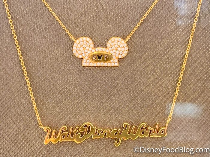 Annual Passholder exclusive necklace. The design features the AP logo inside a pair of Mickey ears and will cost you $125 to purchase.