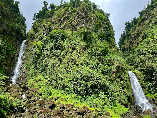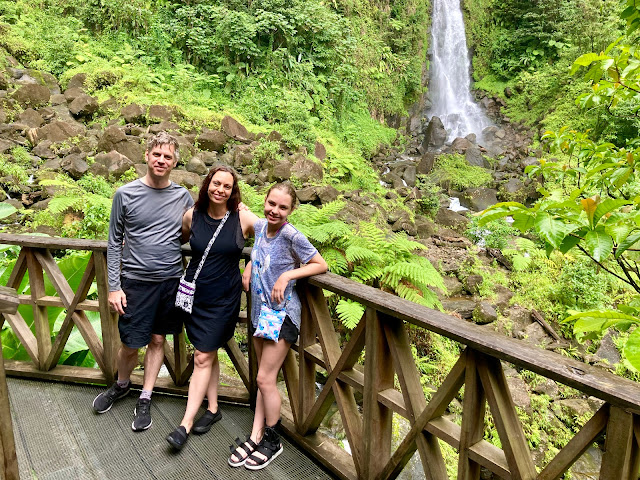 The Trafalgar valley was beautiful and we stopped for a scenic overlook before going to the two falls that make up Trafalgar Falls. It was about a 10 minute walk to the falls from the parking area/ranger station building. Both Emerald Pool and Trafalgar Falls were located inside national parks which Jean-Marie covered the entrance fee for as part of our tour fee. The walk was fine for Emmaline’s ankle. It wasn’t paved, but it was a gravel pathway and she had no problem at any location (there was a guy on crutches at Emerald Pool which I wouldn’t have wanted to do, but it was doable). After we enjoyed the falls, Jean-Marie took us back into town and we parted ways with one of our top experiences of our trip.