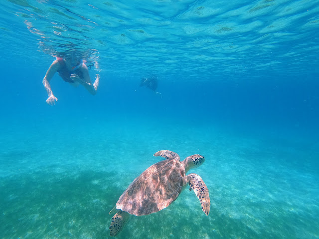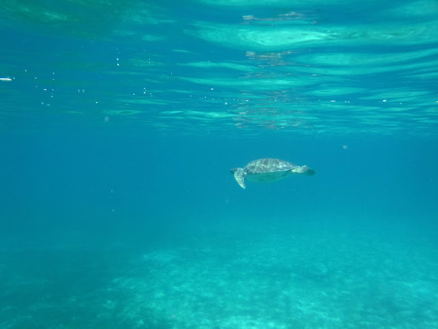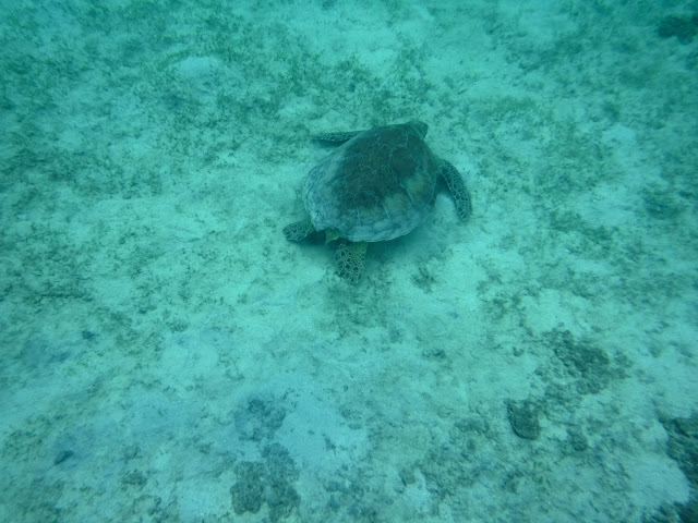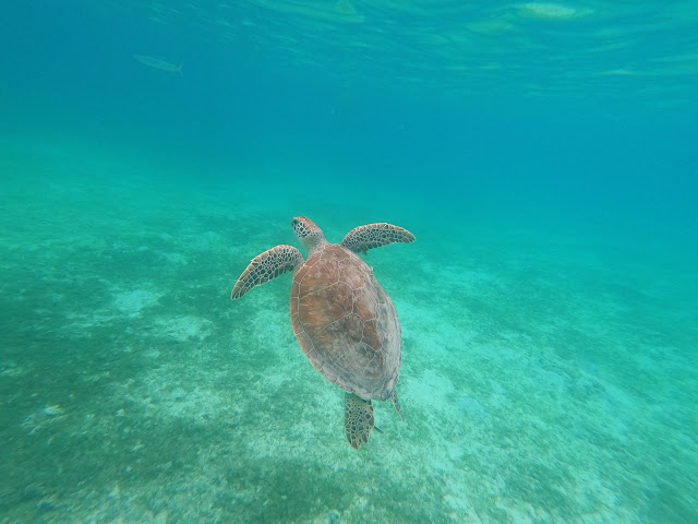 After spider fishing, we went into the water and snorkled around where we saw multiple rays, an octopus (but he was hiding so I didn’t get a photo) and several sea turtles! They were super cool to watch as they went along nibbling in the grass in the bay. Apparently they like to sleep under the runway at the airport which extends out into the water.
