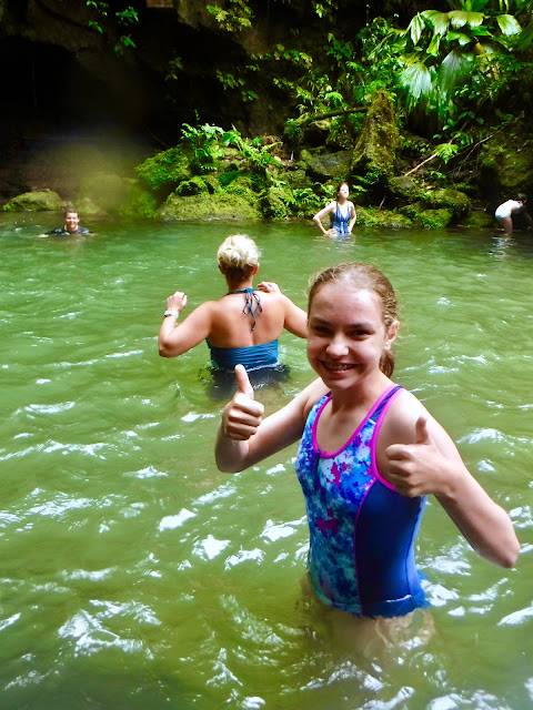 After about a 45 minute drive, we arrived at our first destination, Emerald Pool. It was quite beautiful and reminded me a bit of Hamilton Pool outside of Austin. The water was super cold (but you got used to it after a bit). We saw lots of beautiful plants and cute little fresh water crabs along the pathway and near the pool. We actually got really lucky and arrived just as a bigger tour group was leaving so we mostly had the pool to ourselves.