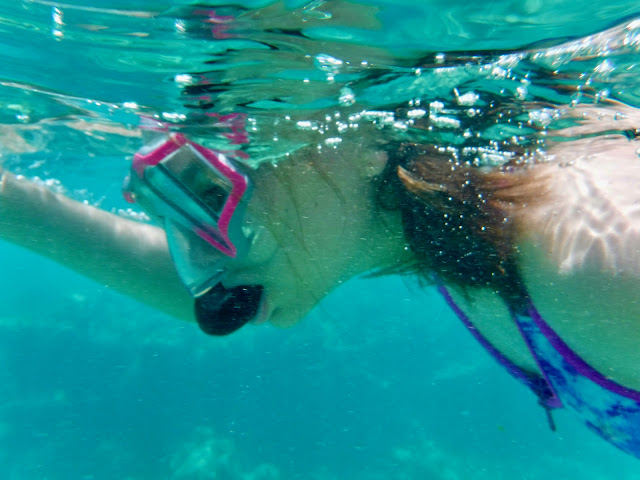 We left Hell’s Gate and traveled a short way to our snorkeling spot near Great Bird Island (which we visited in 2020) and the other boat on the tour, who had gone to Laviscount with us, swapped places with us. That way there was only one boat of people in each spot. It was perfect. These guys are pros. Emmaline wanted to do the Advanced snorkeling path vs. the Beginner so I went with her. She wasn’t allowed to wear fins, as per the PT, so I went with her finless as well. There were only two others on the Advanced tour. We saw a big puffer fish (not puffed) and a ray and a bunch of other fish and coral. By the end, Emmaline said she was pretty tired after swimming and fighting some current. I could have swam all day, but it’s sort of my super power.