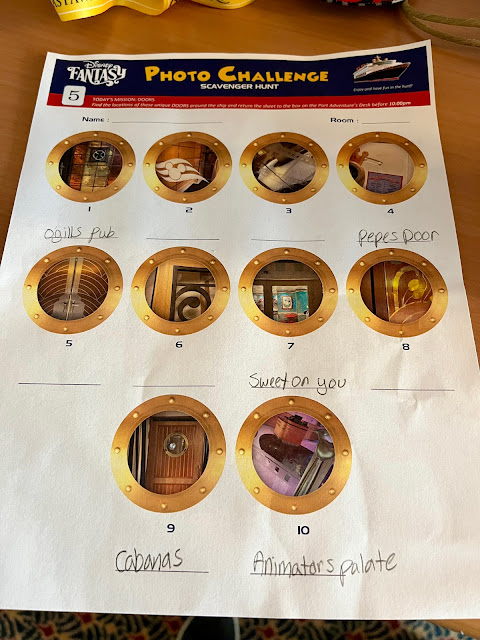 Instead we finished the scavenger hunt for the day, which was brutally hard due to the fact that one of the photos taken earlier in the week was of a section of Animator’s that changes depending on the theme of the night so it didn’t look the same. Not sure if the person on the entertainment team didn’t realize that or if it was purposefully meant to be hard as nails.