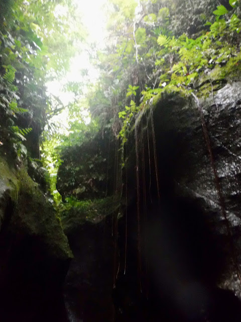 After we were done enjoying Emerald Pool, we hopped back into the van and made our way back down to Roseau, the main town where the ship was docked (pronounced “Rose-Oh”). Then it was back up up up into the rainforest to Titou Gorge. If you’ve ever seen Pirate of the Caribbean 2: Dead Man’s Chest, the island where the native tribe thinks that Jack Sparrow is a god and then tries to roast him on a spit is Dominica and specifically there is a scene where all the pirates go through a sort of cave and this is Titou Gorge.