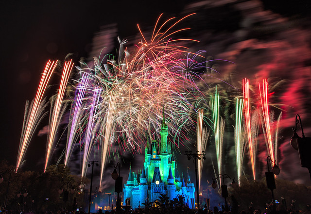 Like I said on the other thread, if you plan on setting up to photograph Wishes, your main concern will be the numerous light posts in the area that might obstruct your view of the castle. I suggest setting up your tripod in front of or just behind the bush that's closest to Main Street. (I was a the FP+ area in front of Casey's.) You will get an unobstructed view of the castle.
