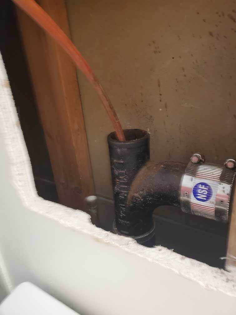 What he found was that there was standing water in the pipes. In this picture the camera is basically underwater.