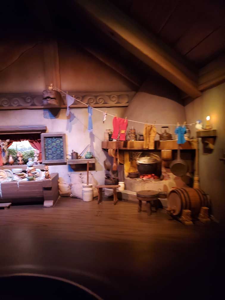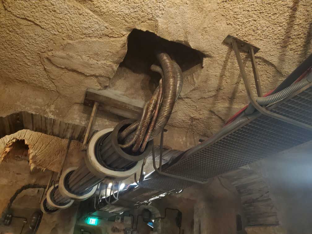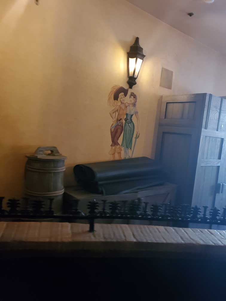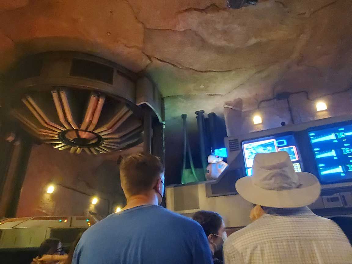 At this point in the queue I was starting to think about the POV of the Imagineers. I was looking at this duct work on the ceiling and wondered about the back story as to why the Imagineers thought to include this piece of hardware and why they chose this room to run it through. I bet they have a playbook explaining this!