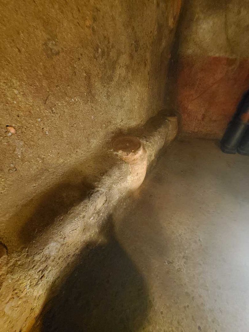 This picture was taken in the same room farther down the bench. What’s with that thing in the bench that looks like an urn or pot? Is this supposed to be on the site of an ancient civilisation?