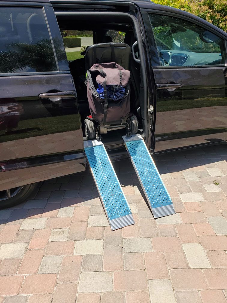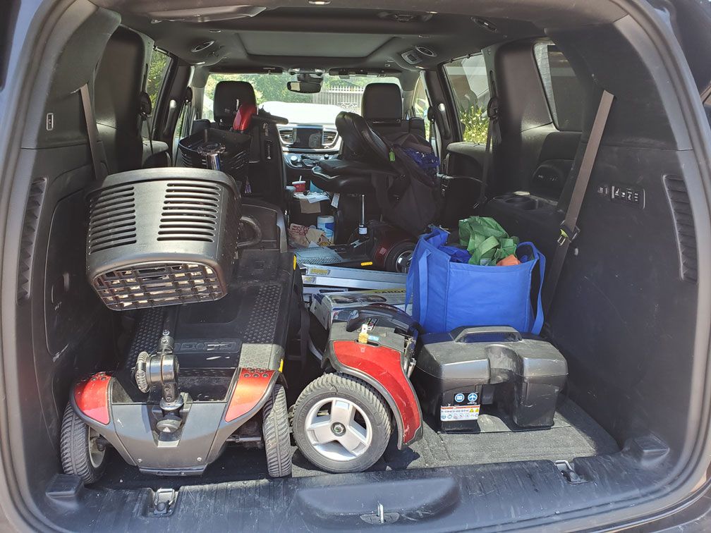 But for the trips since the parks reopened, we have put my scooter in the back, so right now it's side and back unloading.