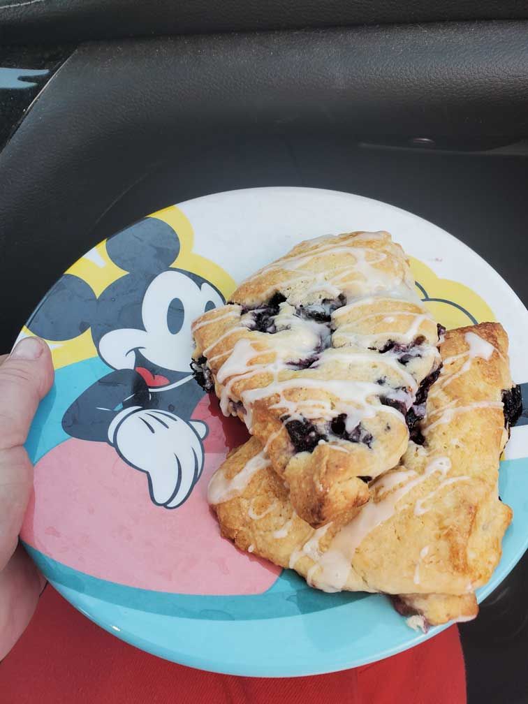 Fran and I were still in bed, not even close to being dressed. I jumped up and told her we needed to get going as quick as we could. We were out the door in about an hour (which is pretty good for us!) We picked Jenny up at her house and her daughter (who just finished pastry school) made us fresh scones that morning. And Jenny had Mickey plates for us to eat them from.