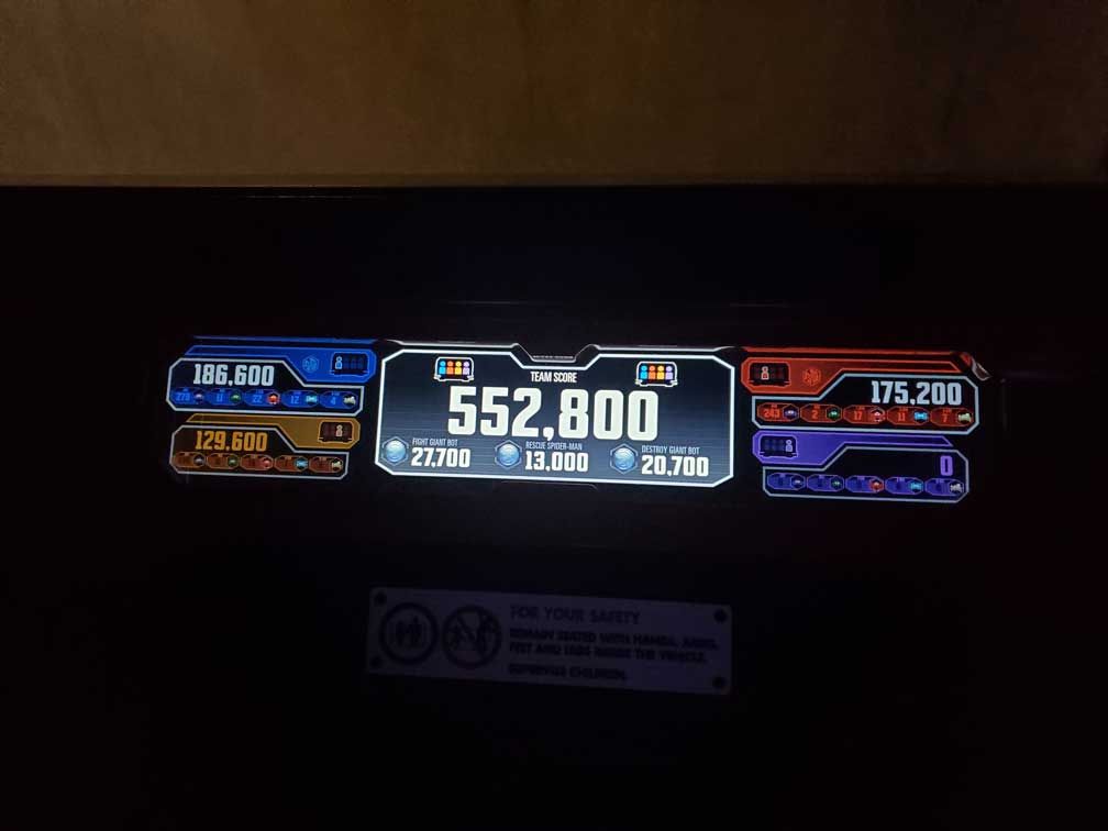 Also I got a better sense of the storyline of the ride. The spiders are not trying to take over the world, just the Avengers Campus. Your first "scene" you are in the WEB building. (Worldwide Engineering Brigade). The second scene you are in the Pym Lab. The third you're in GotG, and the last one you are on the roof where the Quinn Jets take off and land. Jenny kicked my butt. I need to get better at this!