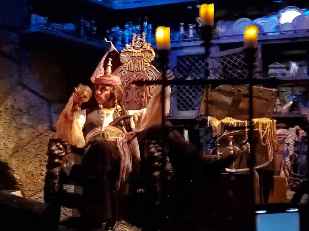 Fran wanted to check on that Pirate shirt in New Orleans Square again to see if they got any larger sizes, but no luck. We noticed that Pirates was a walk on, so we went to get a return pass, and it wasn't for 20 minutes. We went to the end of the line, and tried having them scan it anyways. They said we were a little early, but let us on anyways.