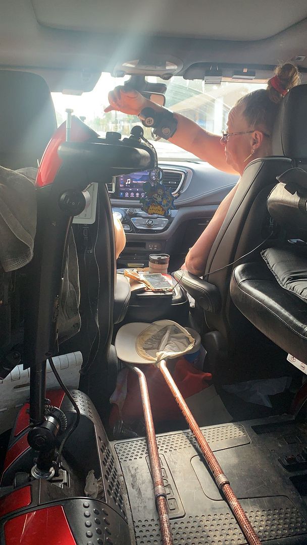 When we were there the week before Fran had bought us the special Webslingers wrist enhancers. On the way we listened to YouTube videos (I watched them) through the car stereo system, to figure out how to wear and use them.